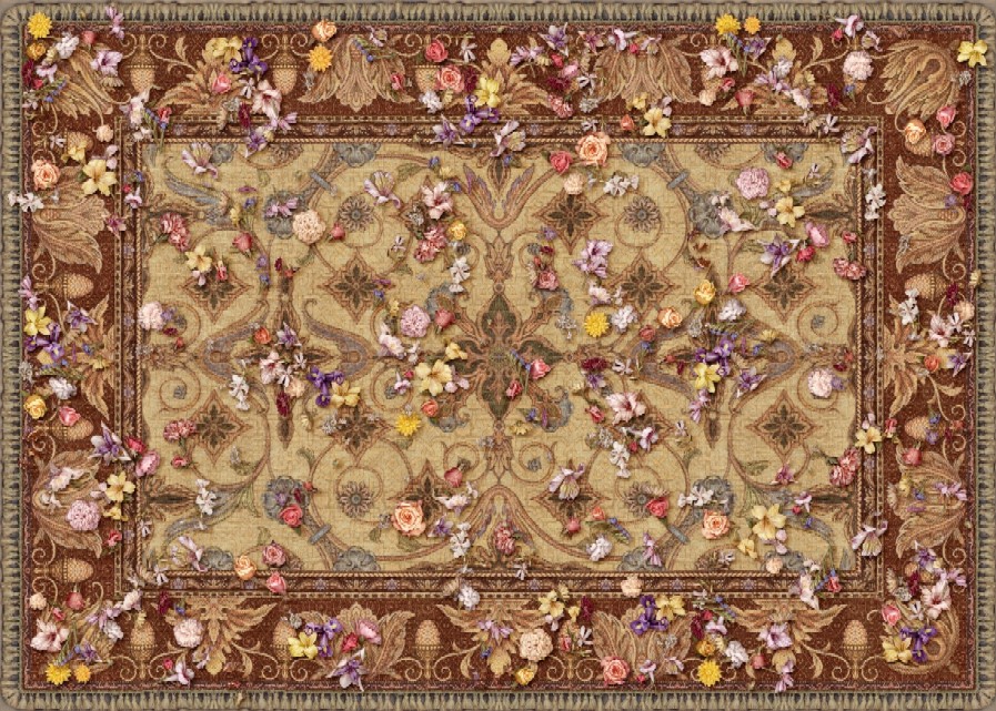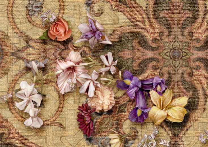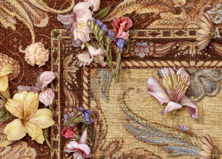 Imagine this in your entry, dining or living area. Fresh spring flowers that will last forever are scattered across this unique oriental rug design! Kurt has taken one of the hottest design trends today and made it even better by using his special anamorphic perspective techniques to paint flower that appear to be 3-Dimensional on a warm Oriental Carpet Design. This design is re-created in incredible detail on the highest quality porcelain tile and shipped to you with a map for installation. The design can be made in any size and is designed to be produced on 10" square tiles – however – if another tile size fits your needs, please let us know. Each is created especially for your home by Allied-Ceramics International in New York State. Price: $ 150/square foot